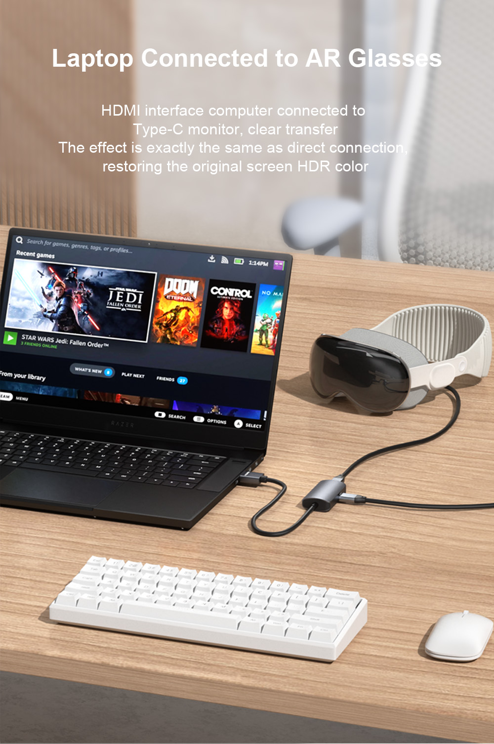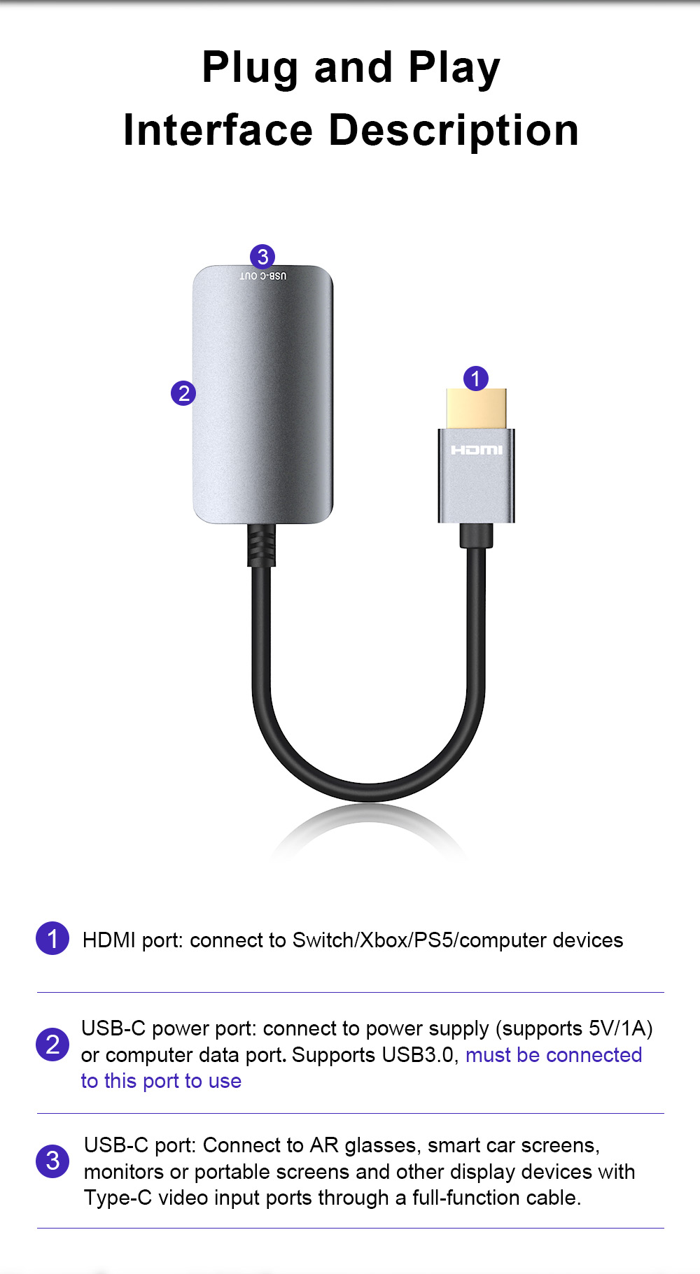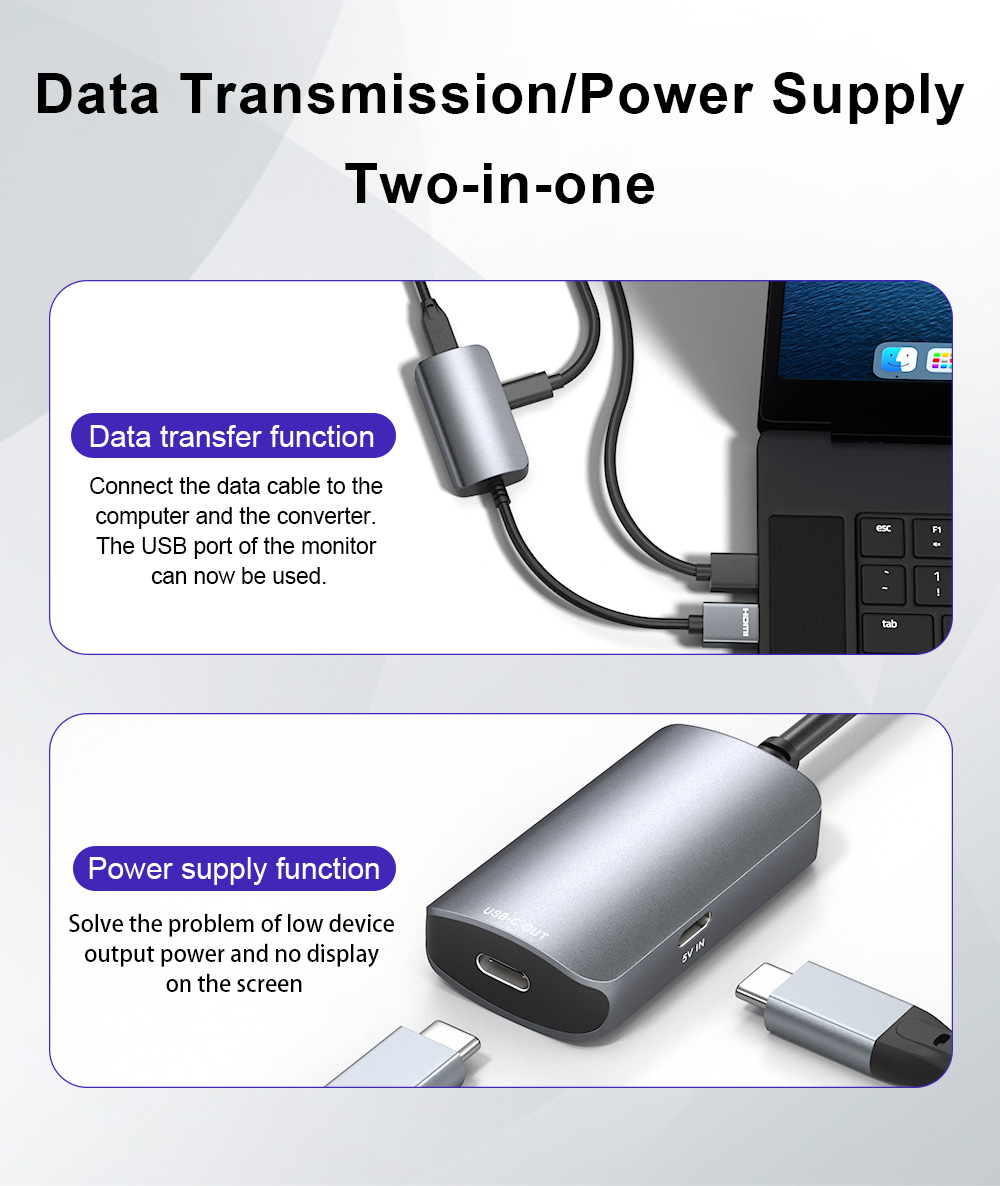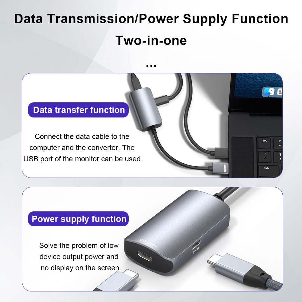 1. Support converting HDMI-2.0 signals to USB C DisplayPort signals (requires the monitor to support USB Type-C signal input).