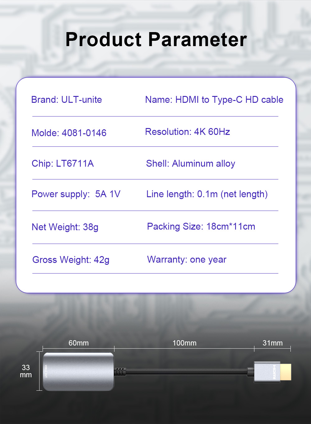 Be the first to review “4K 60Hz HDMI to Type c Converter HDTV Cable Adapter”