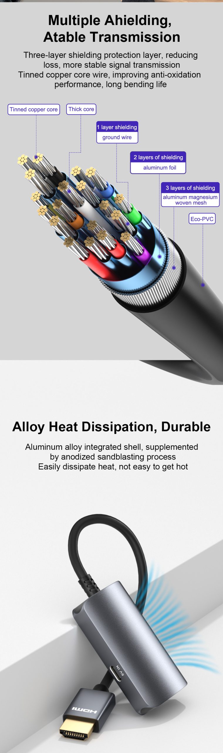 2. Support HDR, support 3D HDCP 1.4/2.2, support 8/10/12 bit color depth.